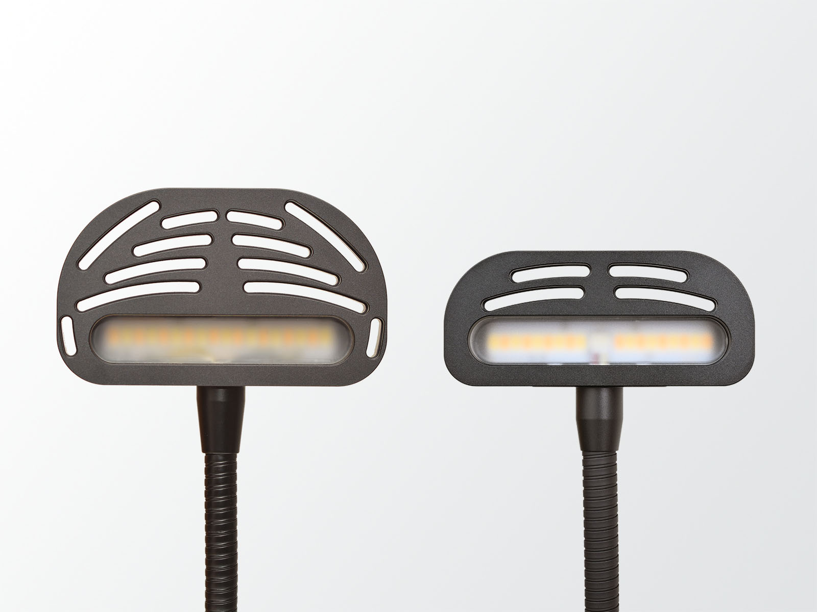 Die Notenpultleuchten der Serie 1602 besitzen zwei justierbare Leuchtenköpfe, welche mit den Lichtfarben 3000 K warmweiß sowie 5600 K kaltweiß bestückt sind und eine ungehinderte Durchsicht zum Dirigenten ermöglichen. Diese Leuchte ist für die Steuerkonzepte LX, N und NT verfügbar. 36 Stück SMD- LEDs und ein spezieller Diffusor ermöglichen auch bei großen Notenpulten eine gleichmäßige und optimale Ausleuchtung des gesamten Notenblattes. Je nach Systemausführung lassen sich beide Lichtfarben mischen, umschalten und dimmen. Für die mechanische Adaption an unterschiedliche Notenpultfabrikate ist umfangreiches Zubehör erhältlich.