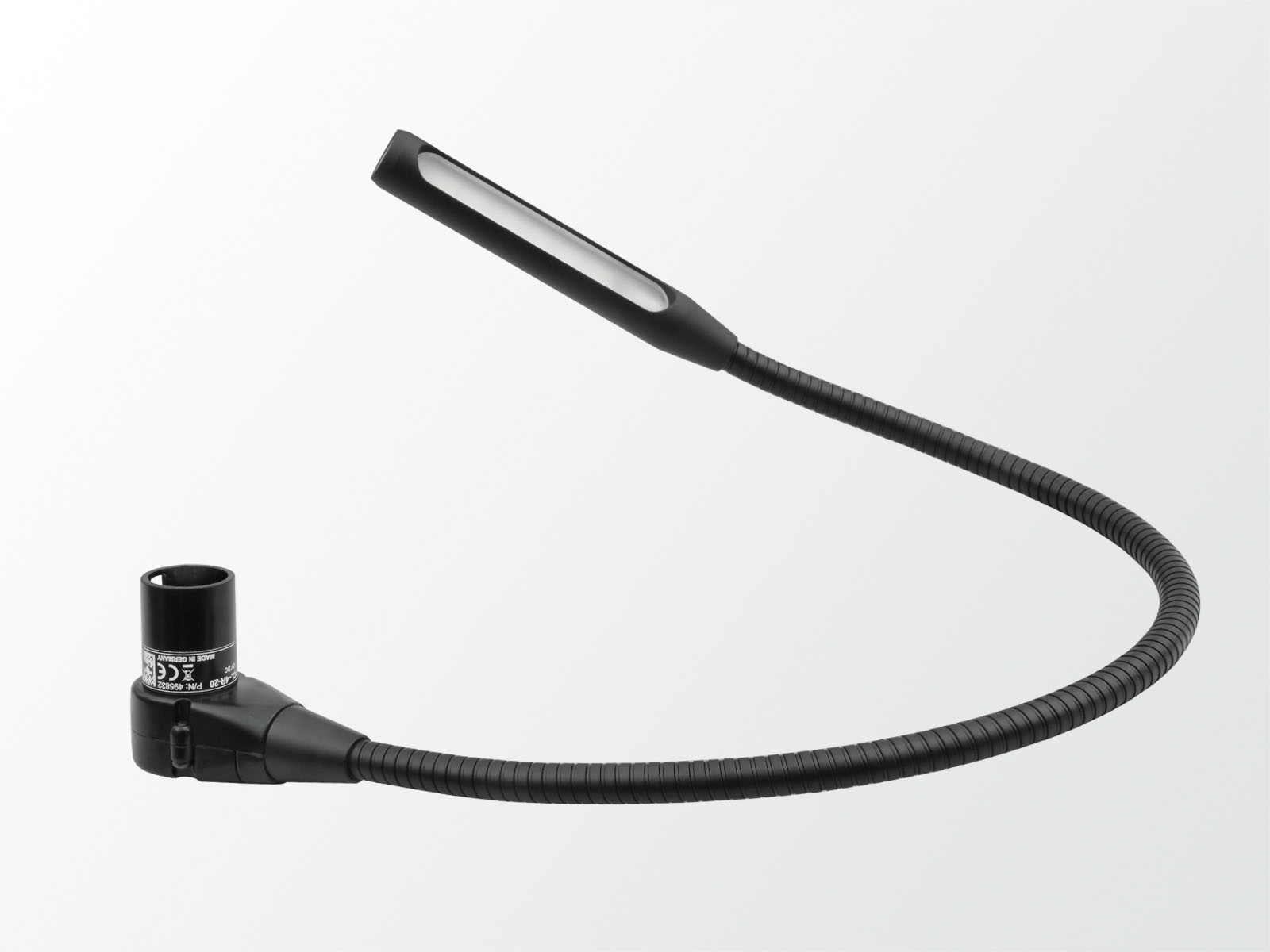 Zeitloses Design in Verbindung mit modernster LED- Technik und hochwertiger Verarbeitung zeichnet diese LED Pultleuchte aus. Die sehr robuste Konstruktion des Leuchtenkopfes (Aluminium-Vollmaterial, CNC gefräst) sowie die Verwendung eines hochwertigen Metall-Flexschlauches erfüllen die besonderen Anforderungen für den professionellen Einsatz an Ton- und Lichtstellpulten. Der hohe Farbwiedergabeindex CRI größer 90 schafft ein angenehmes Arbeitsumfeld für den Nutzer. Bei Bedarf können die LED Pultleuchten mit der innovativen, integrierten Elektronik “Intelli-Pinout“ geliefert werden. Mit diesem Feature wird die PIN-Belegung ihres Pultes von der Leuchte automatisch erkannt und ist somit an nahezu allen Pult- Fabrikaten sofort einsatzbereit.